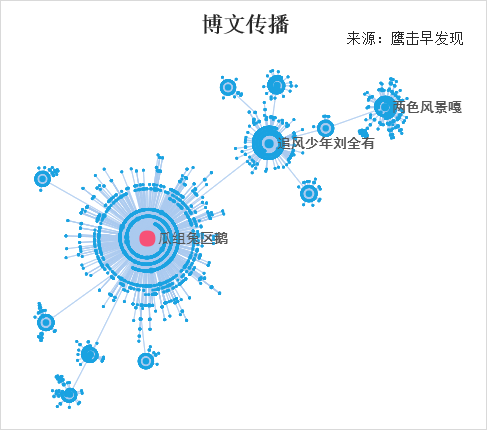 @瓜组兔区鹅 是较早参与“武大新生辩论赛队名”讨论的博主,其相关博文转发已经超过两万次,其中大V@追风少年刘全有 @两色风景嘎 的转发极大的带动了博文传播。