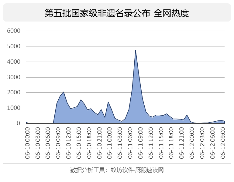 6月10日,国务院公布第五批国家级非物质文化遗产代表性项目名录,涵盖民间文学、传统音乐、传统舞蹈、传统戏剧、曲艺、传统体育、游艺与杂技、传统美术、传统技艺、民俗等共计185项非遗项目。国家级非物质文化遗产名录是经国务院批准,由文旅部确定并公布的非物质文化遗产名录,此次媒体围绕上榜的多个非遗项目进行宣传,吸引不少网民关注。