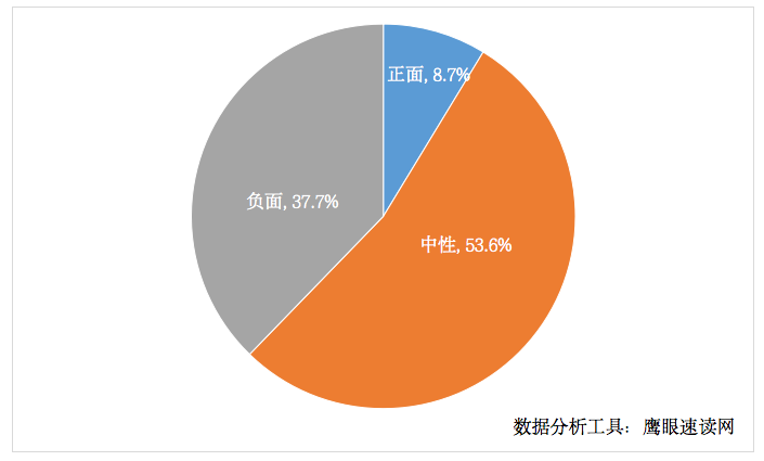 监测时段内,全网有关“福建一工人举报作坊违规炼油”的信息内容主要以中性为主,占53.6%,其次为负面,占37.7%,正面信息较少,占8.7%。