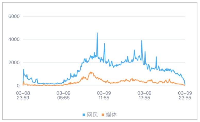 该时段内,有关“2026年全国两会”的舆情信息,媒体舆情于03月09日09时55分达到最高峰,网民舆情于03月09日10时55分达到最高峰。