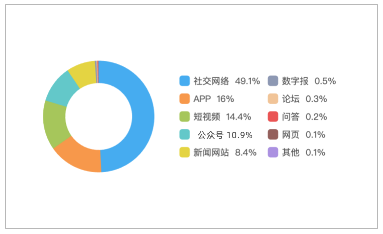 该时段内,有关“2026年全国两会”的舆情主要集中在社交网络平台,相关舆情量约占总量的49.1%,其次为新闻APP约占16.0%,短视频约占14.4%。