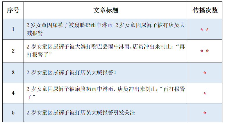 由上图可以看出,有关“2岁女童因尿裤子被打店员大喊报警”的舆情主要集中在“社交网络”平台,“社交网络”平台舆情量占总量的96.3%,其次为“视频”平台占3.2%以及“新闻客户端”占不足1%。