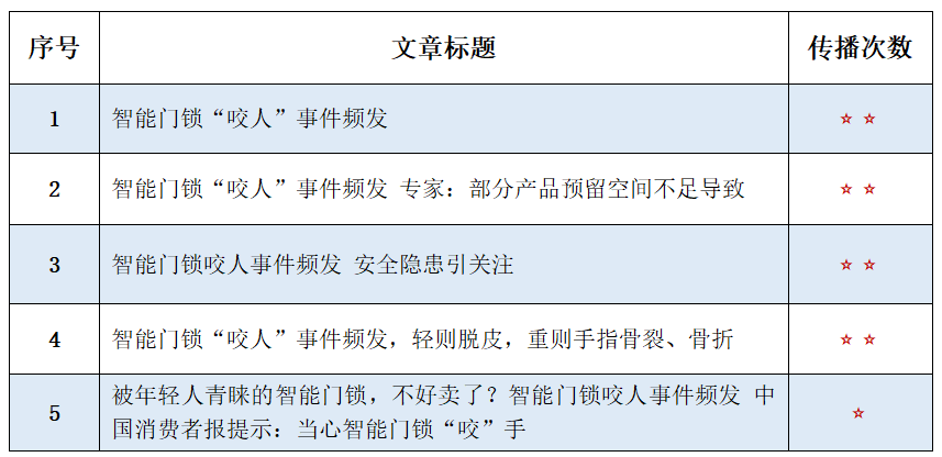 另外,记者在某投诉平台发现,有不少消费者投诉自己购买的智能门锁存在问题。有消费者表示,在使用智能门锁的过程中经常被抓智能门锁品牌客服给他的处理结果是要养成右手开门左手关门的习惯。现在他开关门的时候会高度紧张用哪只手开门,用哪只手关门,都要提前做好“演练”一旦稍有不慎,就可能发生夹击事件。