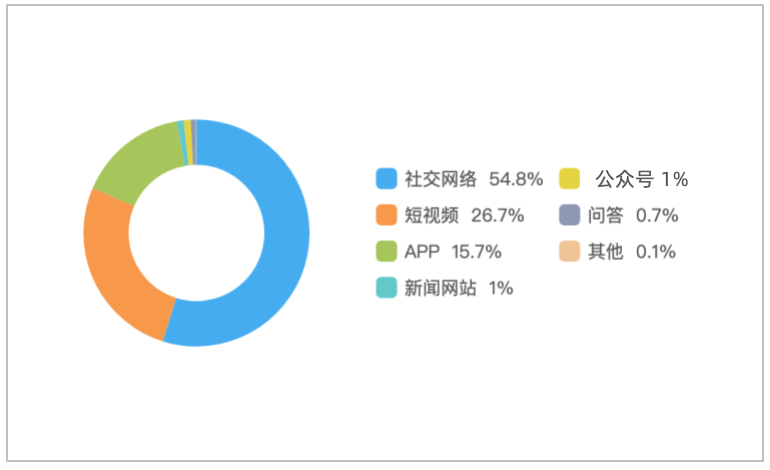 该时段内,境内有关“四川网友拍到孩子赤裸爬行形似野人”的舆情主要集中在社交网络平台,相关舆情量约占总量的54.8%,其次为短视频约占26.7%,新闻APP约占15.7%。