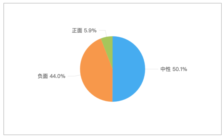 该时段内,境内有关“四川网友拍到孩子赤裸爬行形似野人”的舆情情感倾向中,中性舆情占比最高,达50.1%;其次是负面舆情,占44.0%;而正面舆情较少,仅占5.9%。