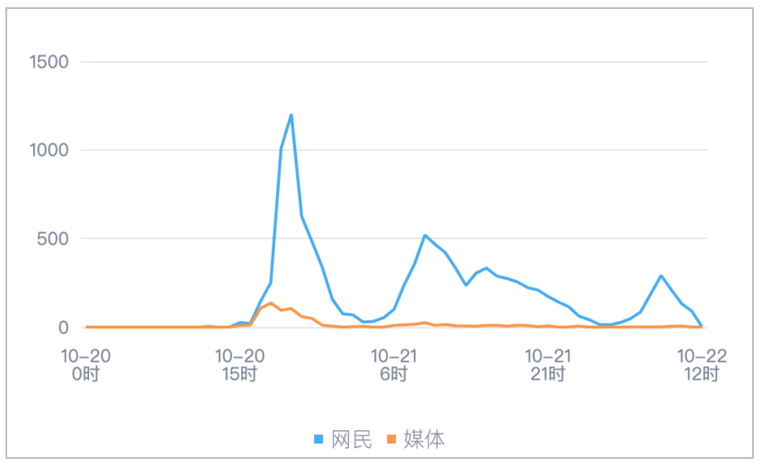 该时段内,境内有关“南昌大学秋招现露骨女主播招聘海报”的舆情信息,媒体舆情于10月20日18时达到最高峰,网民舆情于10月20日20时达到最高峰。