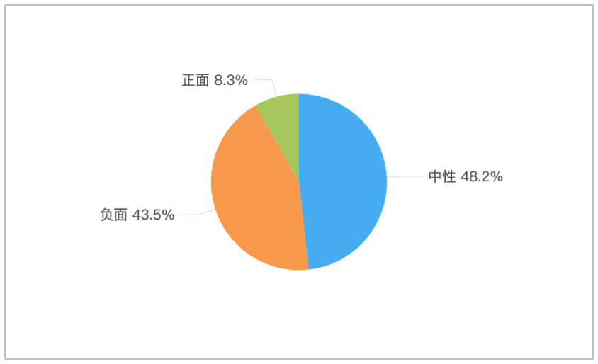 该时段内,关于“南昌大学秋招现露骨女主播招聘海报”的舆情情感倾向中,中性舆情占比最高,达48.2%;负面舆情次之,占43.5%;正面舆情占比最少,仅为8.3%。