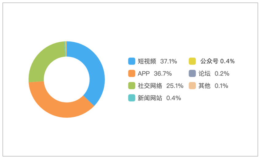 该时段内,境内有关“歌手郑智化怒斥深圳机场没人性”的舆情主要集中在短视频平台,相关舆情量约占总量的37.1%,其次为新闻APP约占36.7%,社交网络约占25.1%。