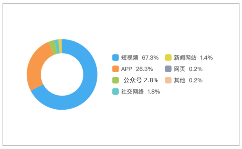 该时段内,境内有关“重庆一河流污染严重”的舆情主要集中在短视频平台,相关舆情量约占总量的67.3%,其次为新闻APP约占26.3%,公众号约占2.8%。