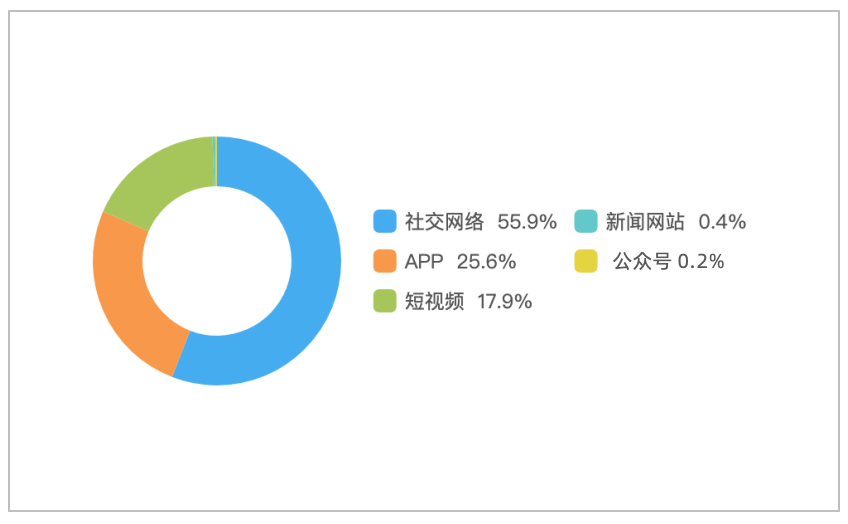 该时段内,境内有关“东莞一公园40余只流浪猫被剜眼”的舆情主要集中在社交网络平台,相关舆情量占总量的55.9%,其次为新闻APP占25.6%,短视频占17.9%。