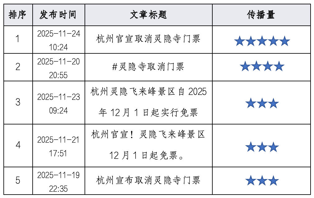 杭州灵隐飞来峰景区(含灵隐寺等)宣布自2025年12月1日起实行免票开放,并配套实施“实名预约、分时游览”制度。此举获得主流媒体与多数网民的高度赞誉,被视为打破“门票经济”依赖、推动文旅高质量发展的标志性举措,舆情呈现高度支持与期待的积极态势。然而,舆论场也交织着对预约公平性、景区承载能力、宗教场所商业化等问题的深度讨论,需予以精准研判。