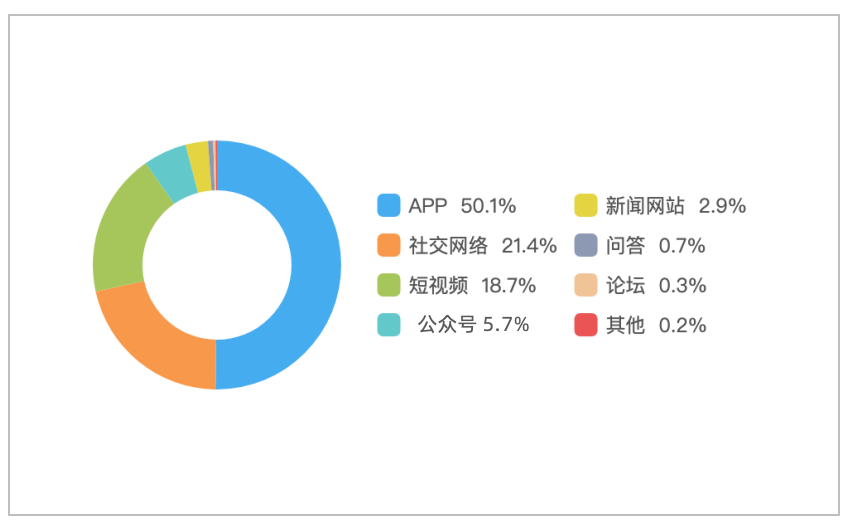 该时段内,境内有关“杭州灵隐飞来峰景区实施免票政策”的舆情主要集中在新闻APP平台,相关舆情量约占总量的50.1%,其次为社交网络约占21.4%,短视频约占18.7%。