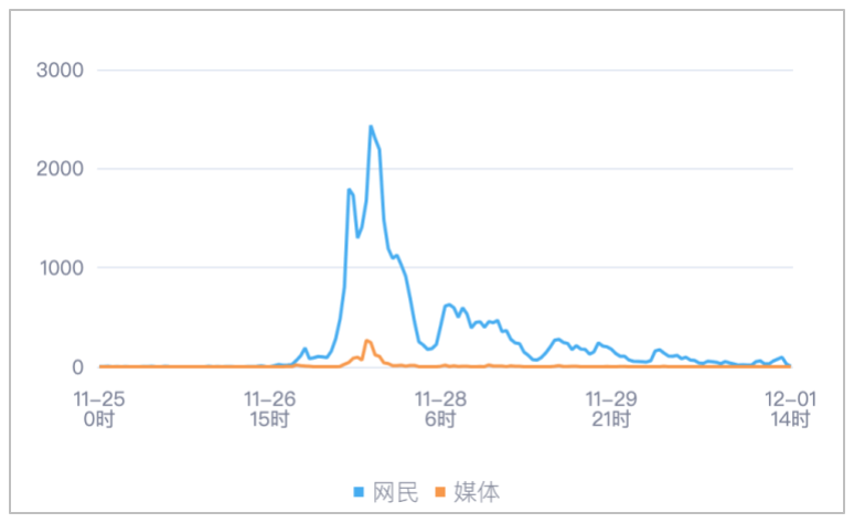 该时段内,境内有关“湖南一对情侣婚前先后坠楼身亡”的舆情信息,媒体舆情于11月27日13时达到最高峰,网民舆情于11月27日14时达到最高峰。