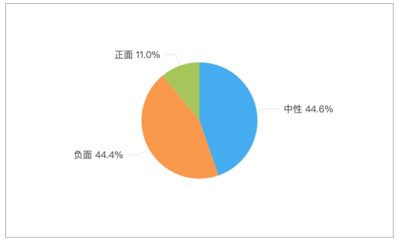 该时段内,境内有关“湖南一对情侣婚前先后坠楼身亡”的舆情中,中性舆情占比最多,为44.6%;负面舆情占比次之,为44.4%;正面舆情占比最少,仅为11.0%。