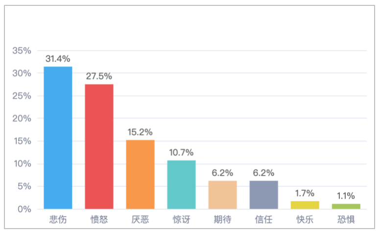 该时段内,通过对有关“湖南一对情侣婚前先后坠楼身亡”的网民言论进行情感倾向分析,大众情绪分布如下: