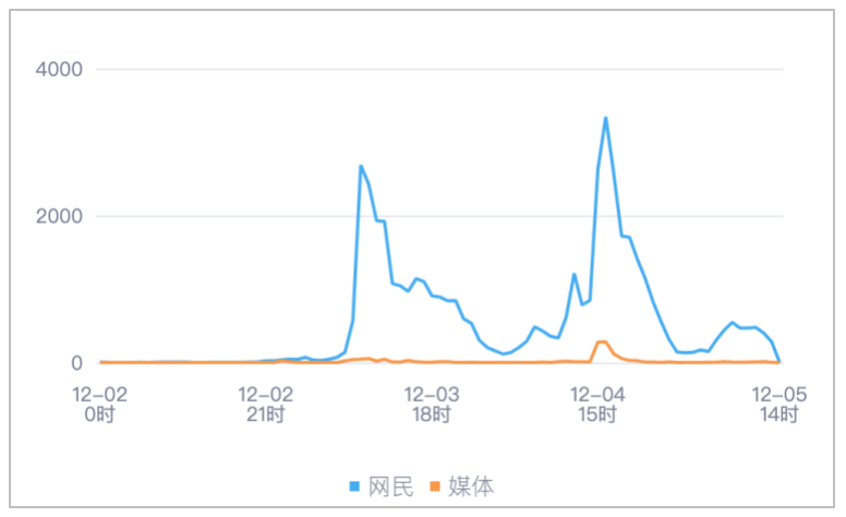 该时段内,境内有关“吉林松原发生恶性案件”的舆情信息,媒体舆情于12月04日16时达到最高峰,网民舆情于12月04日16时达到最高峰。