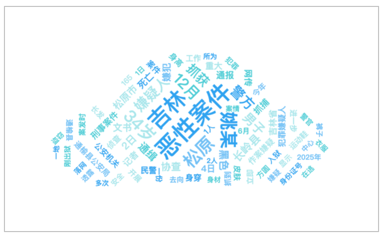 该时段内,有关“吉林松原发生恶性案件”的话题提及频次较高的词语有“恶性案件”、“吉林”、“姚某”、“松原”、“34岁”等。