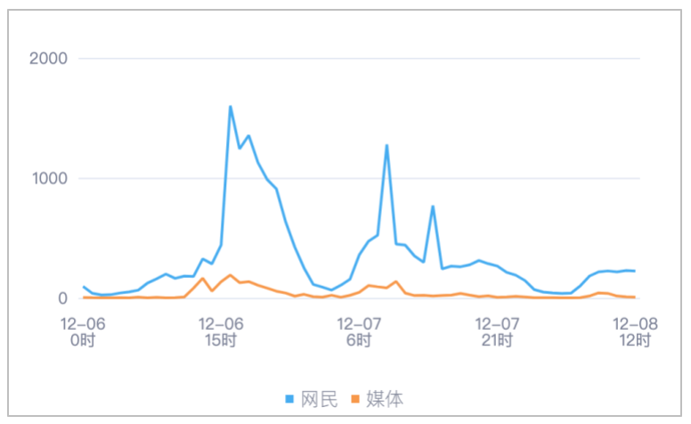 该时段内,境内有关“大湾区大学正式成立”的舆情信息,媒体舆情于12月06日16时达到最高峰,网民舆情于12月06日16时达到最高峰。