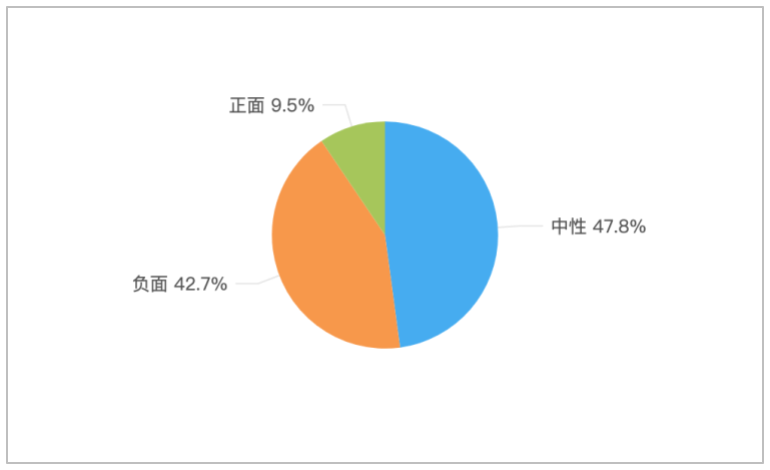 该时段内,关于“西安华清池贵妃出浴雕像被指不雅”的舆情情感倾向中,中性舆情占比最多,为47.8%;其次是负面舆情,占比42.7%;正面舆情占比较少,仅为9.5%。
