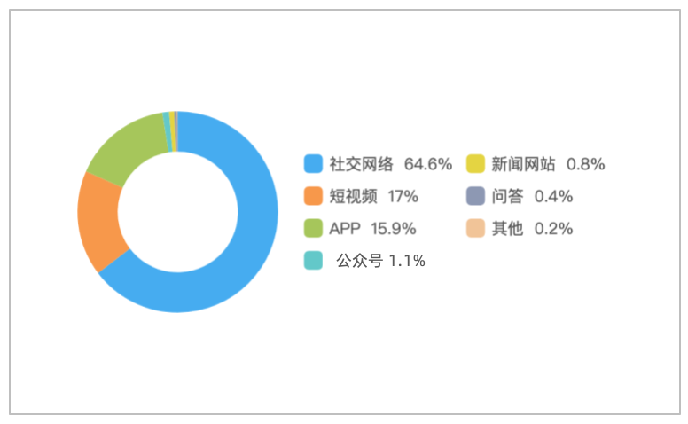 该时段内,境内有关“西安华清池贵妃出浴雕像被指不雅”的舆情主要集中在社交网络平台,相关舆情量占总量的64.6%,其次为短视频约占17.0%,新闻APP约占15.9%。