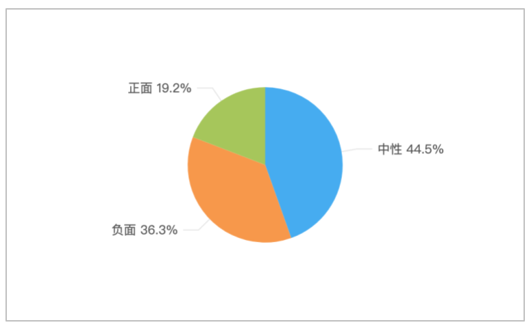 该时段内,境内有关“短剧选用11岁女童演替嫁新娘”的舆情中,中性情感倾向为主,占比44.5%;负面舆情次之,占比36.3%;正面舆情占比较少,为19.2%。