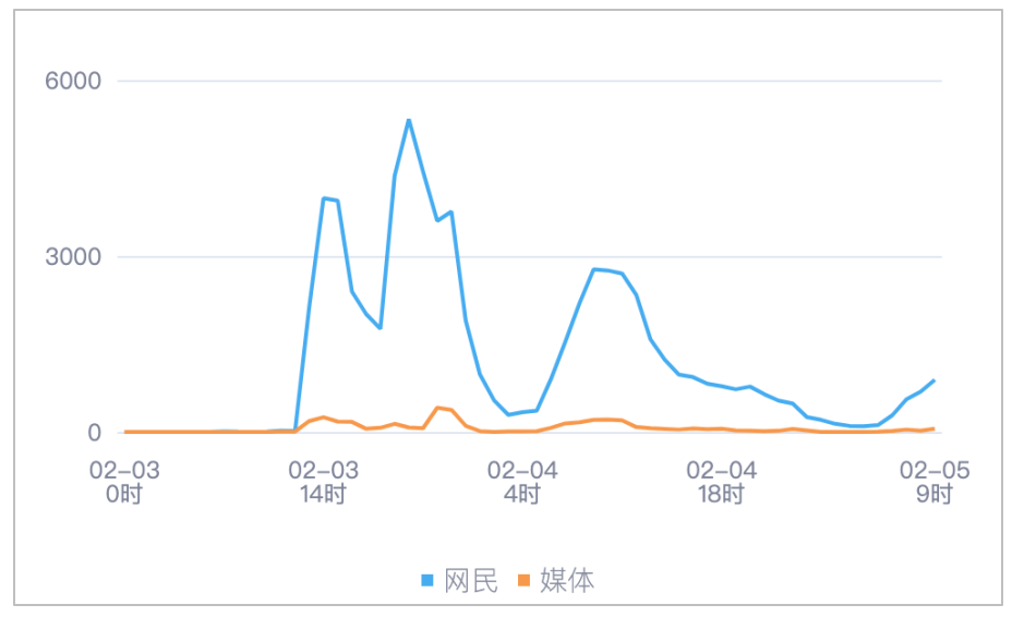 该时段内,境内有关“浙江夫妻网购娃娃菜食用中毒事件”的舆情信息,媒体舆情于02月03日22时达到最高峰,网民舆情于02月03日20时达到最高峰。