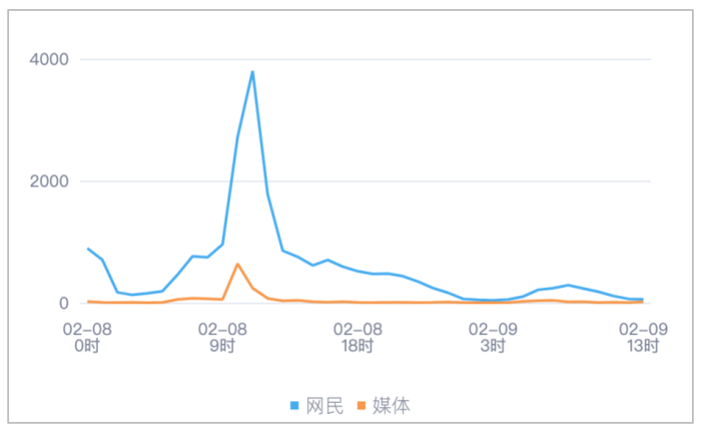 该时段内,境内有关“山西山阴一生物科技公司发生爆炸”的舆情信息,媒体舆情于02月08日10时达到最高峰,网民舆情于02月08日11时达到最高峰。