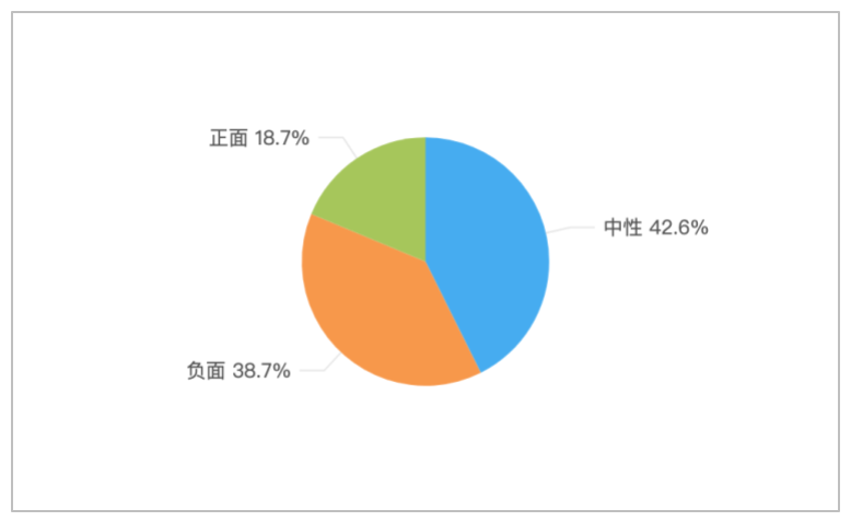 该时段内,关于“山西山阴一生物科技公司发生爆炸”的境内舆情情感倾向中,中性舆情占比最多,为42.6%;负面舆情次之,占38.7%;正面舆情较少,占比18.7%。