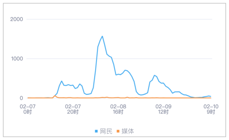 该时段内,境内有关“黑龙江虎林一教师用手背打学生脸”的舆情信息,媒体舆情于02月07日12时达到最高峰,网民舆情于02月08日09时达到最高峰。