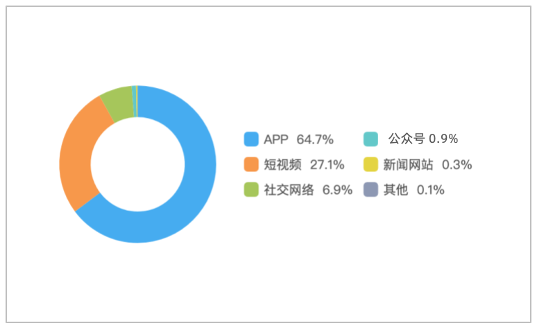 该时段内,境内有关“黑龙江虎林一教师用手背打学生脸”的舆情主要集中在新闻APP平台,相关舆情量约占总量的64.7%,其次为短视频约占27.1%,社交网络约占6.9%。