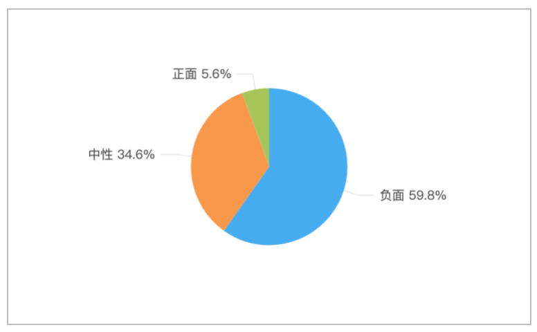 该时段内,关于“黑龙江虎林一教师用手背打学生脸”的舆情情感倾向中,负面舆情占比最多,达59.8%;中性舆情次之,占比34.6%;正面舆情较少,占比仅5.6%。