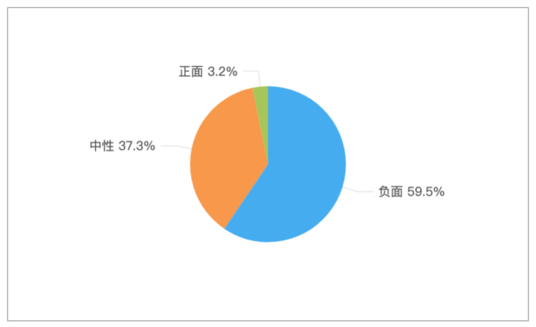 该时段内,关于“福建两学生帮扶老人遭索赔”的舆情情感倾向中,负面舆情占比最高,达到59.5%;其次是中性舆情,占比37.3%;正面舆情占比最少,仅为3.2%。