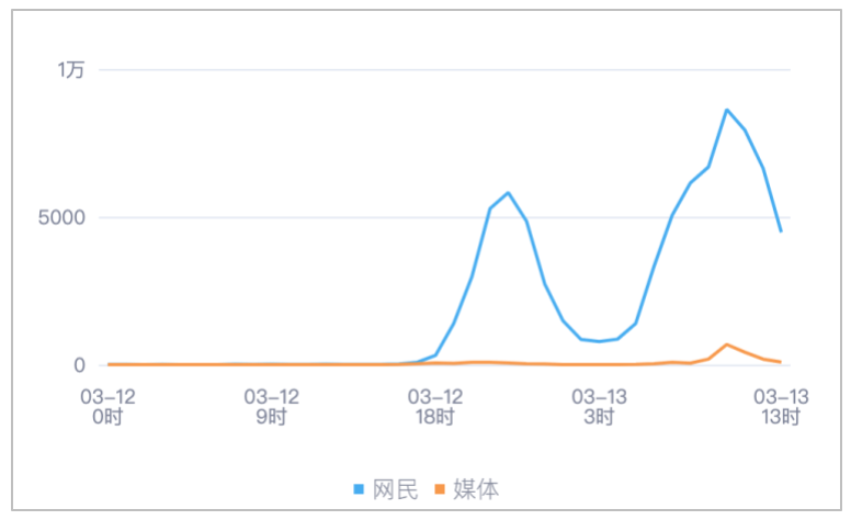 该时段内,境内有关“武汉一男子被困核磁共振室6小时”的舆情信息,媒体舆情于03月13日10时达到最高峰,网民舆情于03月13日10时达到最高峰。