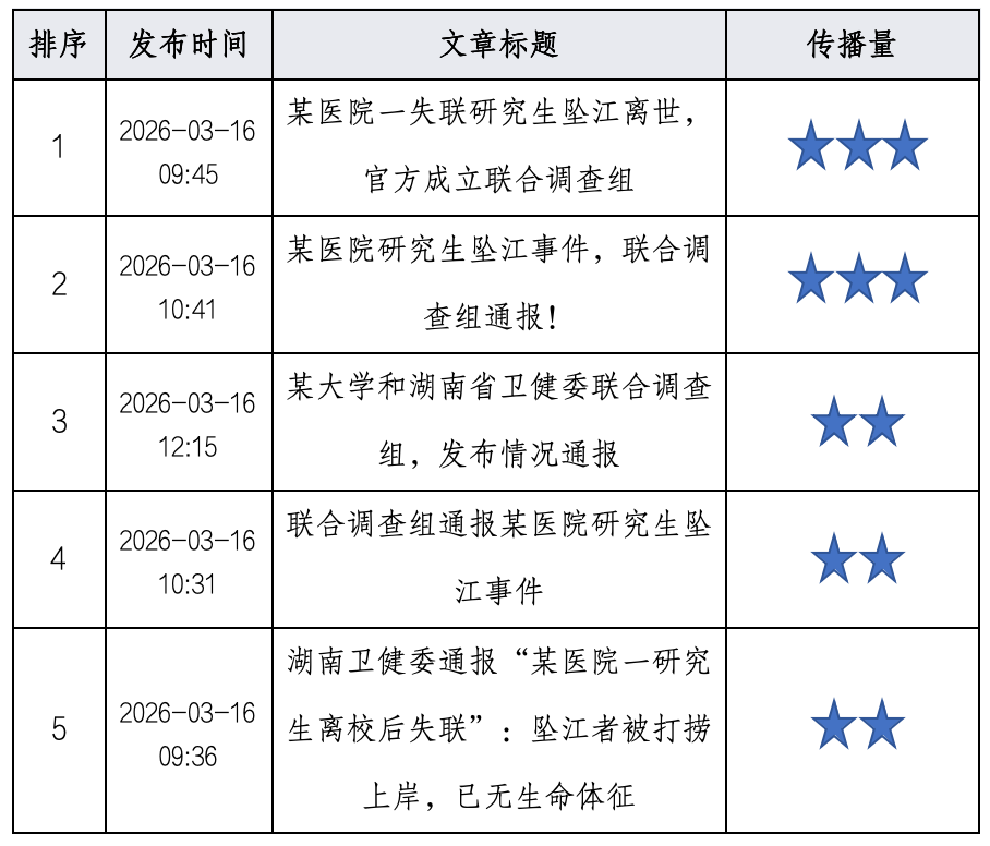 舆情简评:“湖南某医院一失联研究生坠江离世”事件