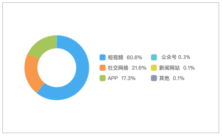 该时段内,境内有关“四川南充一高中生过马路被撞身亡”的舆情主要集中在短视频平台,相关舆情量约占总量的60.6%,其次为社交网络约占21.6%,新闻APP约占17.3%。