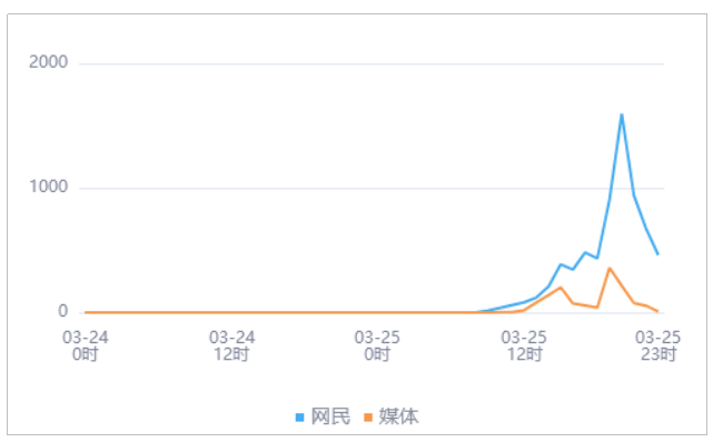 由上图趋势可以看出,有关“一女子来沪出差时遭同事猥亵”的媒体舆情于03月25日19时达到最高峰,网民舆情于03月25日20时达到最高峰。