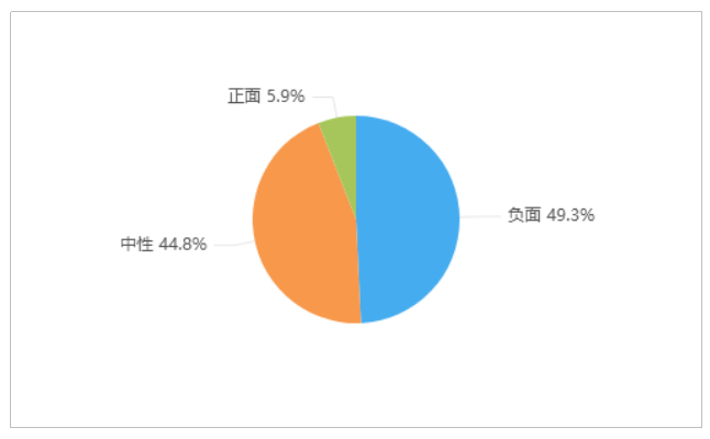 由上图可以看出,有关“福建一车辆坠河致5人死亡”的舆情情感倾向呈现出负面为主的态势,负面舆情占比49.3%;中性舆情占比44.8%;正面舆情占比较少,仅为5.9%。