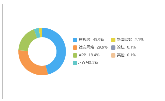 由上图可以看出,有关“福建一车辆坠河致5人死亡”的舆情主要集中在短视频平台,相关舆情量,占总量的45.9%,其次为社交网络占29.9%,新闻APP占18.4%。
