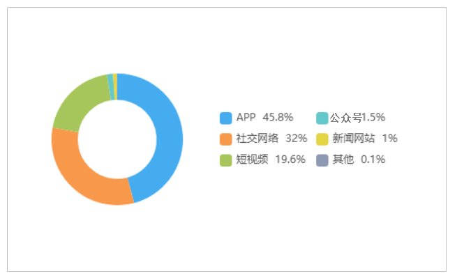 由上图可以看出,有关“一奥迪车在合肥加完油后逃单”的舆情主要集中在新闻APP平台,相关舆情量,占总量的45.8%,其次为社交网络占32.0%,短视频占19.6%。