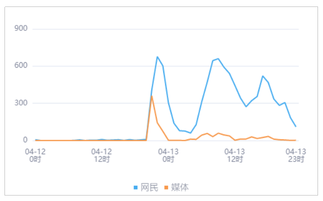 由上图趋势可以看出,有关“广西4名学生下河游泳溺亡”的媒体舆情于04月12日21时达到最高峰,网民舆情于04月12日22时达到最高峰。