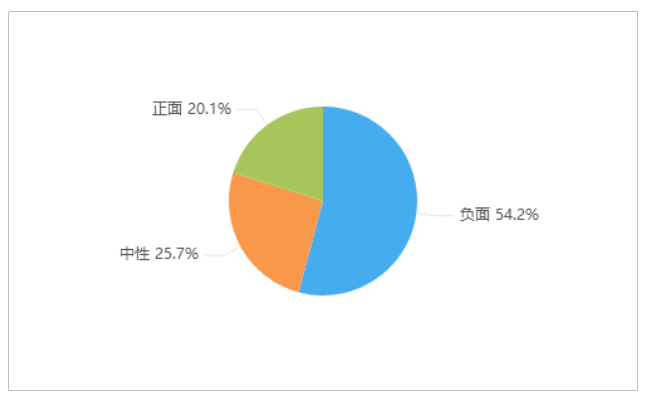 由上图可以看出,关于“云南泼水节不文明行为事件”的舆情情感倾向中,负面舆情占比最多,达54.2%;其次是中性舆情,占25.7%;正面舆情占比最少,为20.1%。