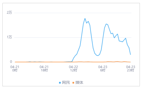由上图趋势可以看出,有关“福建三明一保安在停车场掌掴女子”的媒体舆情于04月23日15时达到最高峰,网民舆情于04月22日19时达到最高峰。