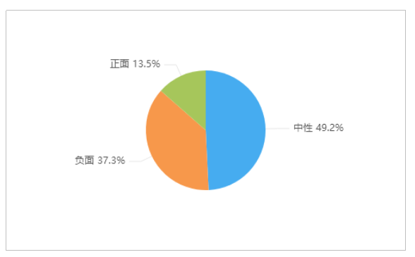 由上图可以看出,关于“重庆一医院有幼童候诊时意外坠落”的舆情情感倾向中,中性舆情占比最多,达到49.2%;其次是负面舆情,占37.3%;正面舆情较少,占13.5%。