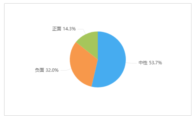 由上图可以看出,有关“广西钦州大暴雨致多地严重内涝”的舆情情感倾向中,中性舆情占比最多,为53.7%;其次是负面舆情,占32.0%;正面舆情较少,占14.3%。